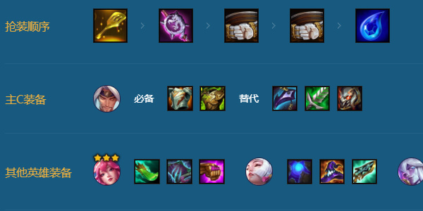 1连败阵容在第二阶段选秀中拥有优先权。铲子很贵。如果有铲子就直接去莲花吧。如果你没有铲子,就使用亚索一半的阿狸装备。辛德拉的蓝色霸主符并不着急。来到中期。亲属可以携带水滴,然后将其转移给辛德拉。