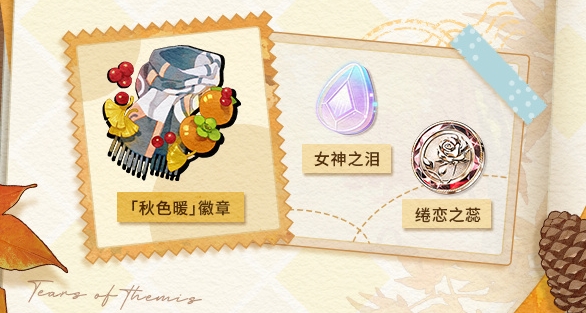 完成活动任务即可获得活动限定徽章【暖秋色】、【女神之泪】、【爱之核心】以及思维拓展物质奖励。