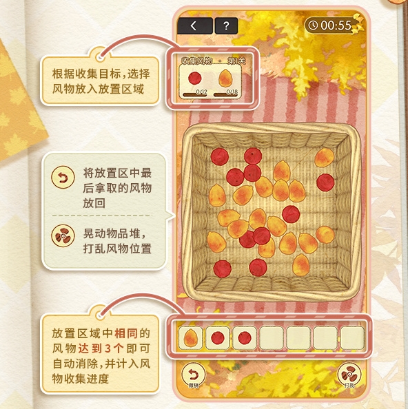3、在有限的时间内,拾取指定的季节物品并达成所有收集目标,即可成功收集。