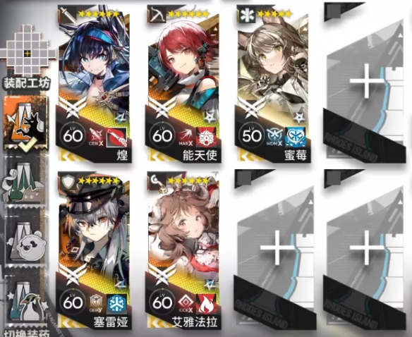 所需干员:Huang、Serea、Enchantress、Eyafala、Honeyberry(元素牛奶)