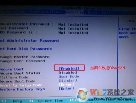 联想扬天v310-15isk 安装win7旗舰版步骤二:BIOS修改与U盘启动1、开机时按F2或(FN+F2)进入BIOS,按方向键切换到Security,选择Secure Boot按回车将其设置为Disabled;