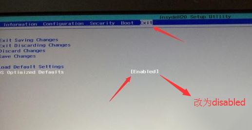 2. 转到“退出”并将“OS Optimized Defaults”设置为“Disabled”或“Other OS”;