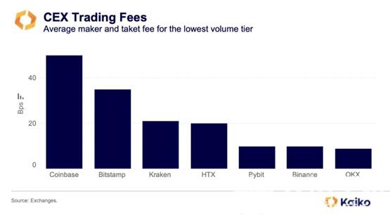 Bybit交易所排名如何?研究分析公司Kaiko 报告称,自2023 年10 月以来,Bybit 交易所的市场份额从8% 飙升至16%,3 月份超越Coinbase,成为仅次于币安的第二大交易所。报告还分析了一些可能的原因。报告指出,主要中心化交易所的交易费用在OKX、Binance和Bybit中是最低的。 Bybit近年来获得了市场份额,这可能是基本条件,但不是主要原因。
