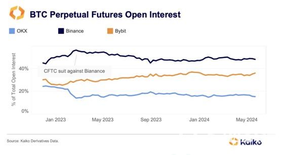 在衍生品市场,Bybit已经占据优势,继续保持第二名的位置。报告还认为,Bybit 的增长可能受益于币安的监管关注,从而获得更多市场份额。就在今年6月,Bybit一改主流交易所针对中国禁令的严格作风,开放海外华人注册使用,令不少人震惊。