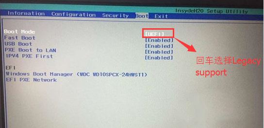 4。切换到启动和更改启动模式从UEFI转换为传统支持;