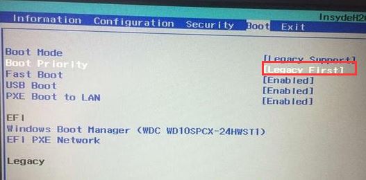 5。然后将启动优先级设置为Legacy,然后按F10选择“是要输入”;