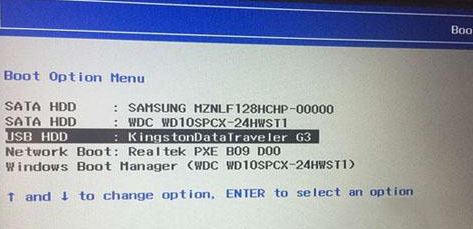 6。插入创建的USB驱动器启动磁盘,重新启动并按下F12或FN+F12以调用启动管理对话框,选择USB HDD以识别USB驱动器并启动并输入PE,然后按Enter;