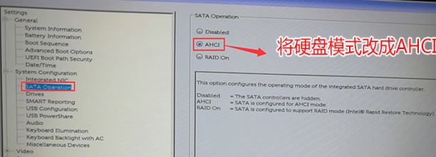 5。注意:切换到系统配置项目。如果严格的磁盘模式是突袭的,请将SATA操作硬盘模式更改为AHCI模式。否则,安装Win7将显示0x000007b蓝屏。更改后,选择退出并保存BIOS,如下图所示;