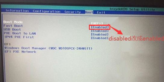 4。切换到引导,将快速启动从禁用到启用,然后启用快速启动设置USB驱动器启动;