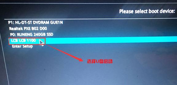 5。重新启动并按ESC选择并识别USB驱动器启动项目,然后按Enter启动USB驱动器;