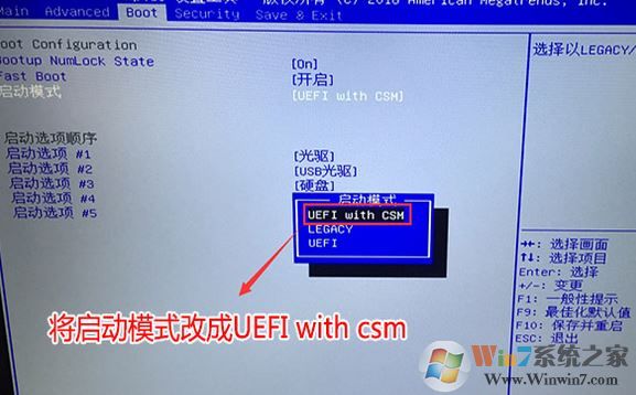 微星PL62 7RC装win7步骤二:BIOS修改与U盘启动1。按下DEL在启用电源时输入BIOS接口,然后使用箭头键向上,向下,向下,向左和向右选择选项启动模式(启动模式选择),将UEFI用CSM更改为UEFI,如下图所示;