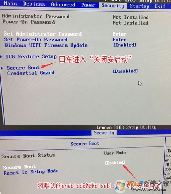 联想ThinkCentre E75 改win7图文教程步骤二:BIOS修改与U盘启动1。按F2或(FN+F2)在电源上输入BIOS,按箭头键切换到安全性,选择安全启动Enter并将其设置为禁用;