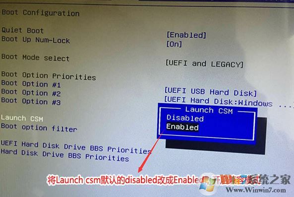 3。然后将启动CSM设置为启用,启用兼容模式,如下图所示,然后将设置保存在F4中;