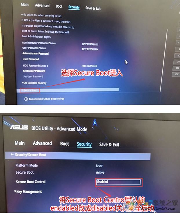 2。输入高级模式后,按箭头键移动到安全性,选择安全启动,然后输入并更改安全的启动控件,以关闭安全启动;