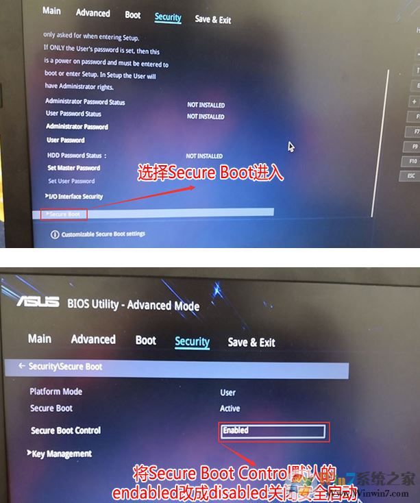 2。输入高级模式后,按箭头键移动到安全性,选择安全启动,然后输入并更改安全的启动控件,以关闭安全启动;