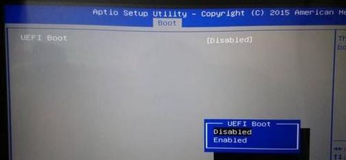 3。选择UEFI启动Enter以将其设置为禁用。如果有CSM,请将其设置为启用,然后按F4或F10保存设置。