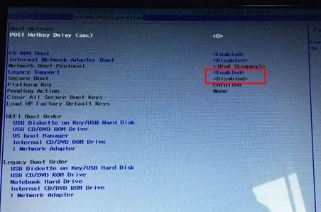 3。输入后,将安全启动设置为禁用,然后将遗留支持设置为已启用,请按F10选择YES以输入以保存;