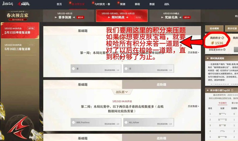 如果您没有时间观看游戏,则每天都可以获得盖帽的中间奖励!只参加日常预测。无论是对还是错,请注意不要识别所有要点。