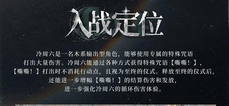 三、角色定位寒冷的周六战斗机制是独一无二的,您可以在不消耗动作点的情况下打牌并打击伤害,这使她在控制战斗节奏方面具有自然的优势。它的激情旋转得非常快,并且可以在每轮中释放其最终动作,并且具有强大的连续产出能力。她造成的损害非常特别,其中一半是原始损害,这使她能够有效地应对高度防御性的敌人,并且在面对此类敌人时不会陷入输出困难。另一半是仪式的伤害,因此她还可以整合到仪式团队中,并与队友合作创建一个出色的组合。