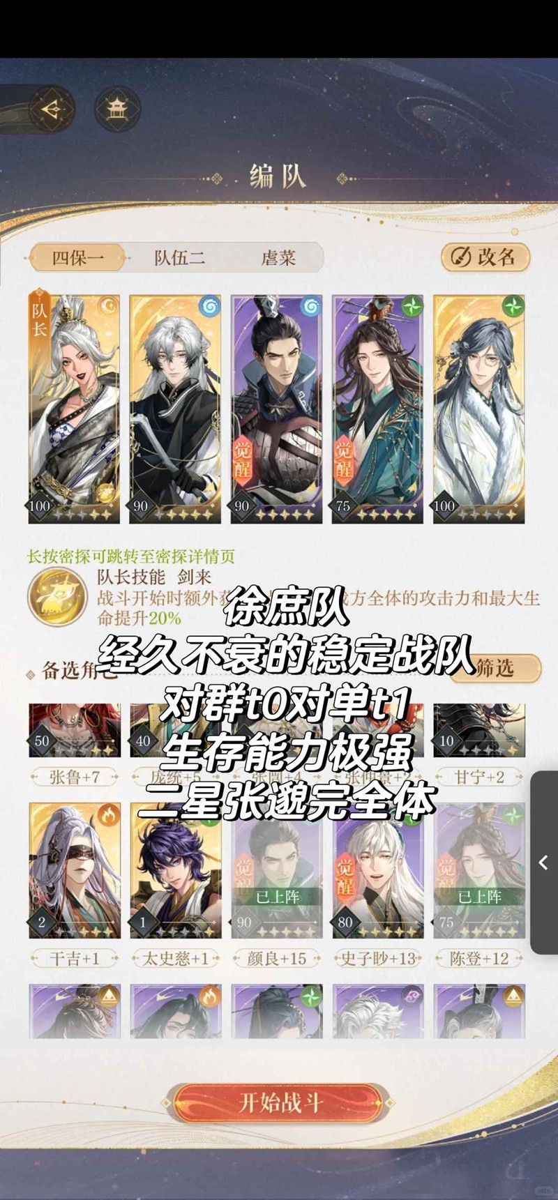 目前,鸟类队的比赛分为长期和短期的小组和单打。该小组中的鸟类较少,主要是Xu Shu和Zhang Jiao,他们的团队也是最经典的团队。单点长期和短期有不同的想法,但基本上是围绕技能损害(水队)和一般进攻损害(一般进攻团队)的想法。图片显示了团队匹配。当您真正的比赛时,您应该看到自己的伤害不大还是无法站立并灵活地调整团队。