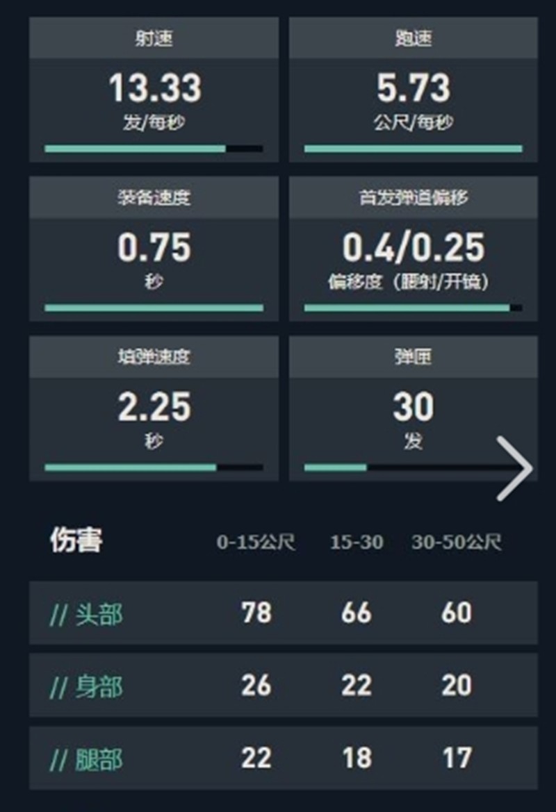 在0-15米的范围内,Hawling的头像率高达78,他的身体达到26,双腿命中率为22。在15-30米的距离处,头像率保持在66,身体和腿部命中率分别为22和18。即使在30-50米的长距离距离时,头像率也可以保持在60,并且命中率分别为20和17。打开示波器后,准确率提高到1.15倍。尽管发射速度下降到每秒12发,运动速度速度降低到每秒4.36米,但射击精度得到了显着提高。