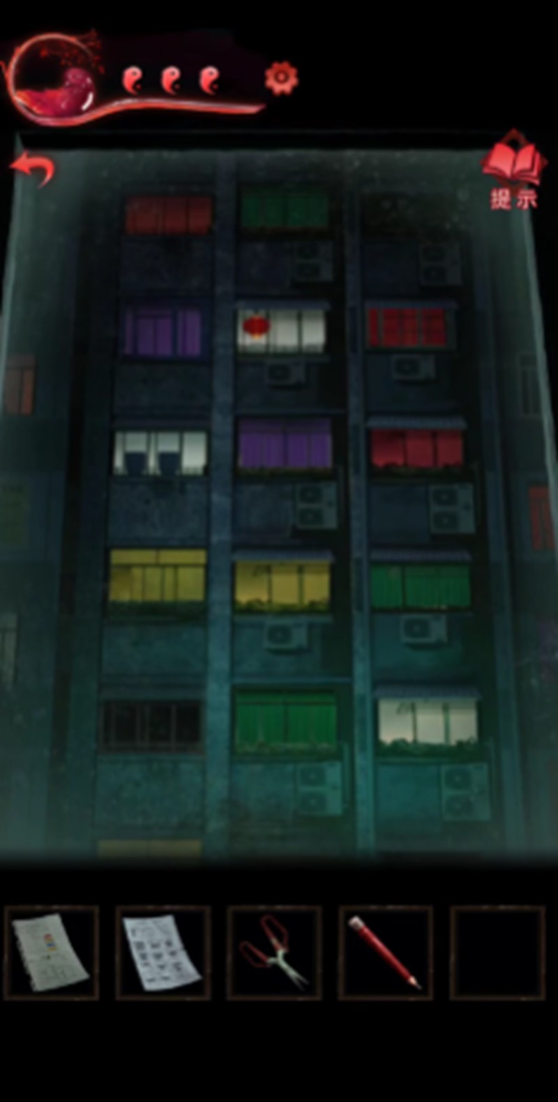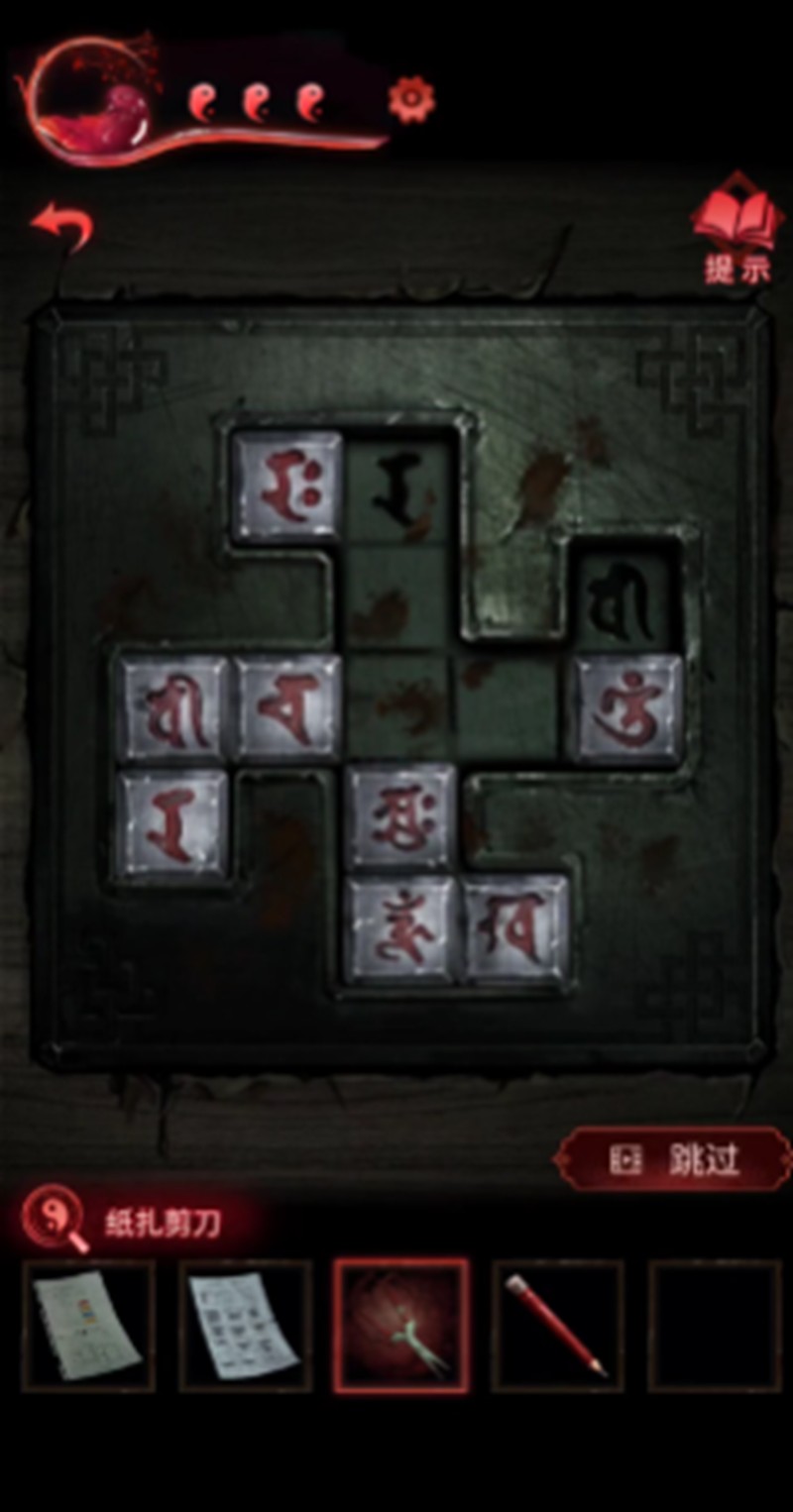 第一个难题需要根据纸张的颜色来计算书架每一层相应颜色的书籍数量。化妆盒“ 4235”的密码是通过此方法计算的。用眉笔打开化妆盒后,观察幽灵新娘的姿态的位置,您可以找到邪恶的咒语护身符和脱铲铲。学习门上的图案需要用铲子清洁,然后修改后的咒语护身符可以使纸媒体消失。