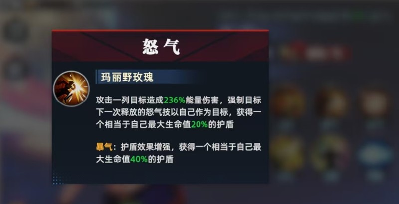 玛丽的愤怒技能“侵权打击”需要50个愤怒点,这不仅会对目标造成严重损害,而且在其健康状况小于50时会触发恢复效果。她的最终技能“ Guardian Shield”可以为三个健康的队友提供无损害的效果,同时攻击一个目标。被动技能“铁将”为她的盾牌提供了20的最大健康状况,当触发严重罢工时,这可以进一步改善屏蔽效应。