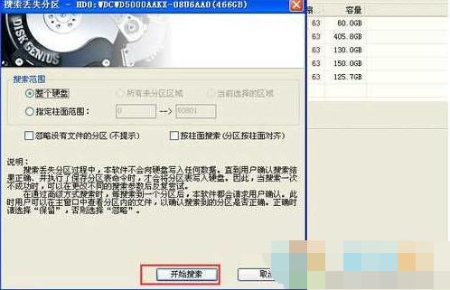 3。选择范围,整个硬盘,然后单击“启动搜索”;