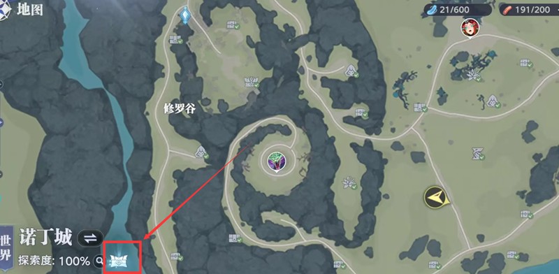 瀑布下方的宝藏可以通过最小值上的浅蓝色标记来定位,当不打开时,标记以绿色显示。峡谷入口处的宝藏隐藏在石柱后面,您需要打开探索模式以仔细搜索。必须先击败废墟凹陷中的宝藏才能获得。应该注意的是,只有当探索级别达到100时,您才能获得所有奖励。