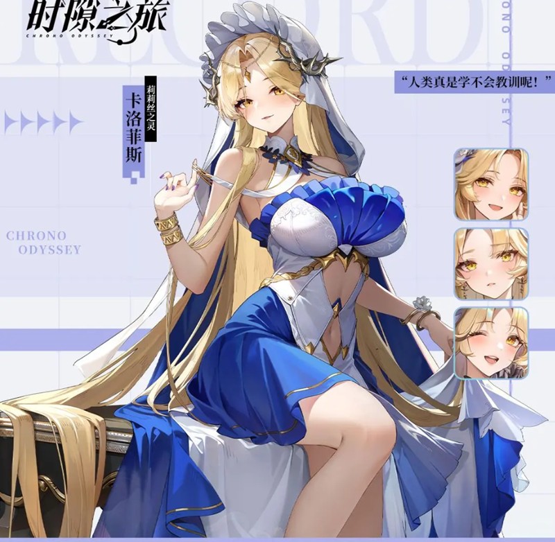 在时间老虎机之旅中,卡洛菲是一个迷人的SSR法师角色。作为莉莉丝(Lilith)的精神,她不仅具有性感而优雅的外观设计,而且具有复杂的背景故事和多个神秘的身份。