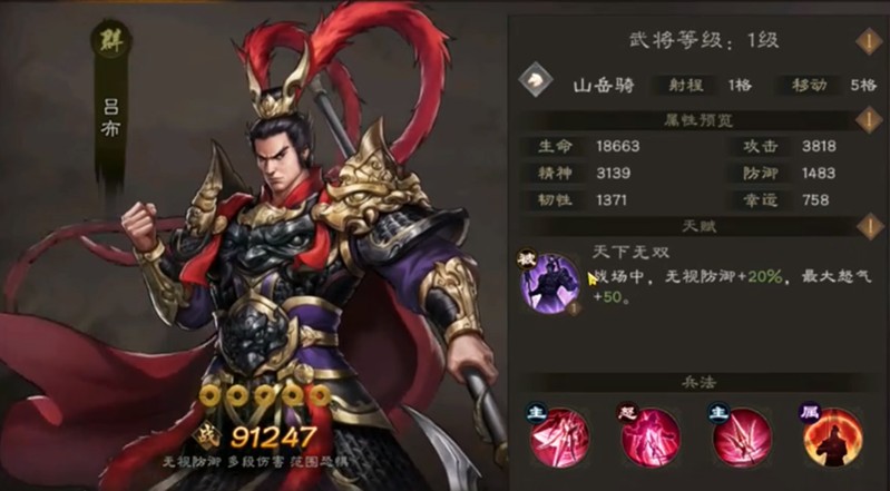 卢布(Lu Bu)是英雄营地中最具代表性的将军之一。这位强大的将军具有广泛的攻击范围和非常高的临界罢工率。在战场上,卢布(Lu Bu)可能会不断输出损失,他强大的战斗力通常会对敌人构成巨大威胁。他是英雄阵容中当之无愧的核心输出。