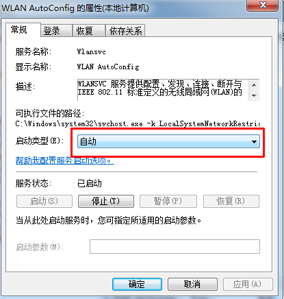 3。双击WLAN AutoConfig服务,将启动类型更改为“自动”,然后单击[Start]按钮,最后单击“确定”;