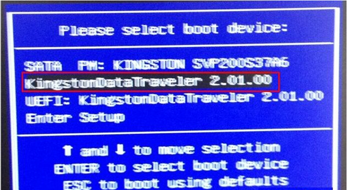 4、接下去我们可以使用上下键来选择U盘,回车就可以从U盘启动了。