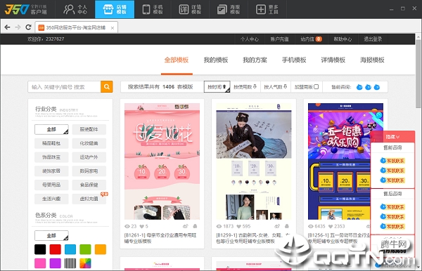 问:沒有选购淘宝旺铺能够应用350的模版吗?
