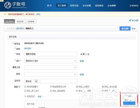 2、主账户登录子账后台管理—员工绩效管理—填补管理权限,受权应用千牛卖家软件。