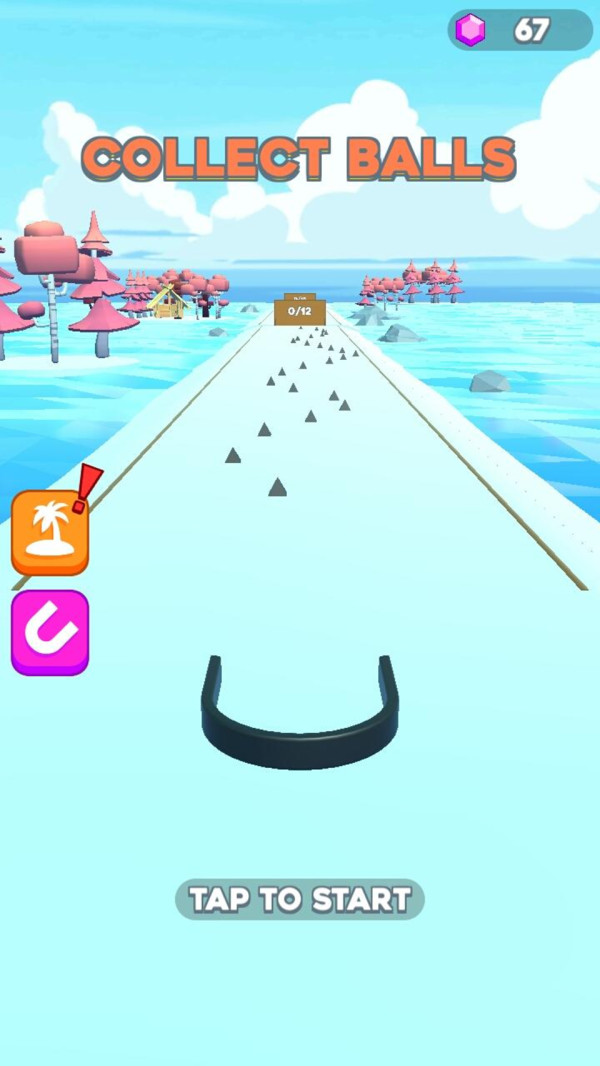 滑动屏幕控制磁铁左右移动,收集更多小铁片并避开沿途障碍物,直至到达终点。