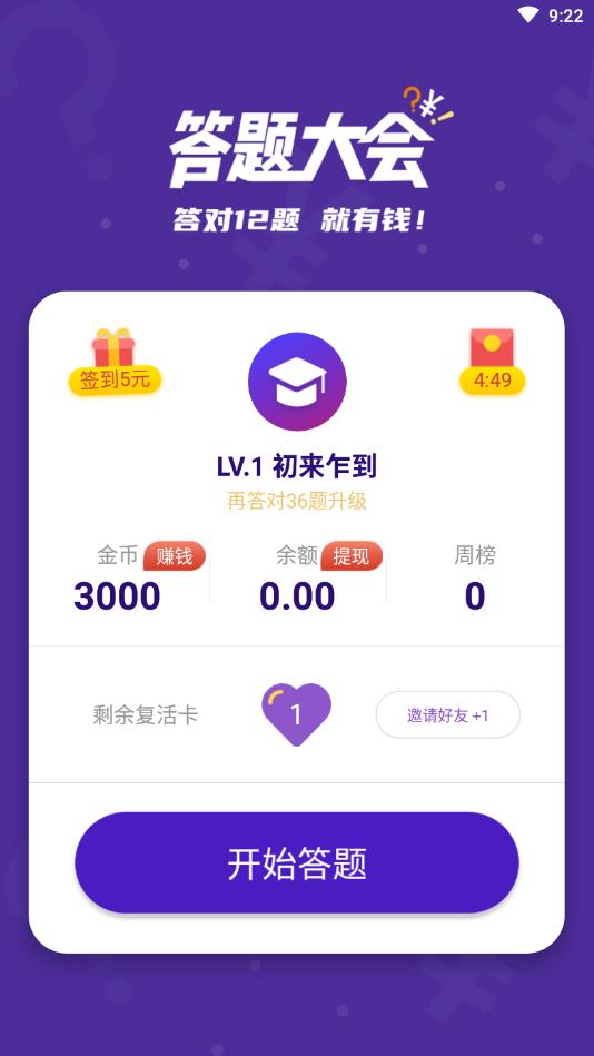 你可以邀请你的朋友进来一起玩,还可以获得免费答题卡,让你多一次获胜机会;
