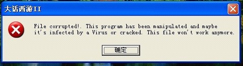 【提示信息】File corrupted! This program has been manipulated any maybe it’s infected by a Virus or cracked. This file won’t work anymore.
