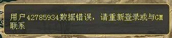 【提示信息】客户42785934数据信息不正确,请再次登陆或与GM联络