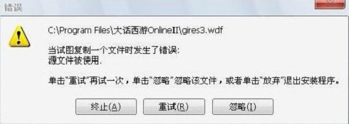 【提示信息】:复制临时文件夹不成功…… (如下图)