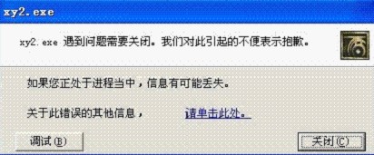 【提示信息】:xy2.exe 碰到难题必须关掉。大家对于此事造成的麻烦表明很抱歉。(如下图)