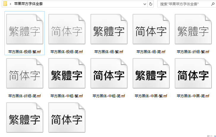 苹方字体6种字重大小: