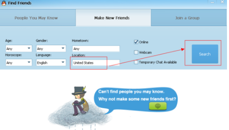 5、在发生的加好友页面将Location设定为United states,随后点Search;