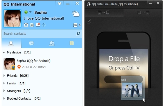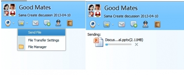 2. 群聊发文件:在群聊作用中,新提升了发文件控制模块,只需将文档拖进文本框,就可以一次性发给多名朋友,文件分享更方便快捷。