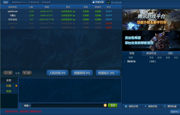 腾讯官方游戏对战平台选用最优秀网络服务器解决技术性,我区沒有屋子限制、总数限制,适用数万人同屏,开场更快速。