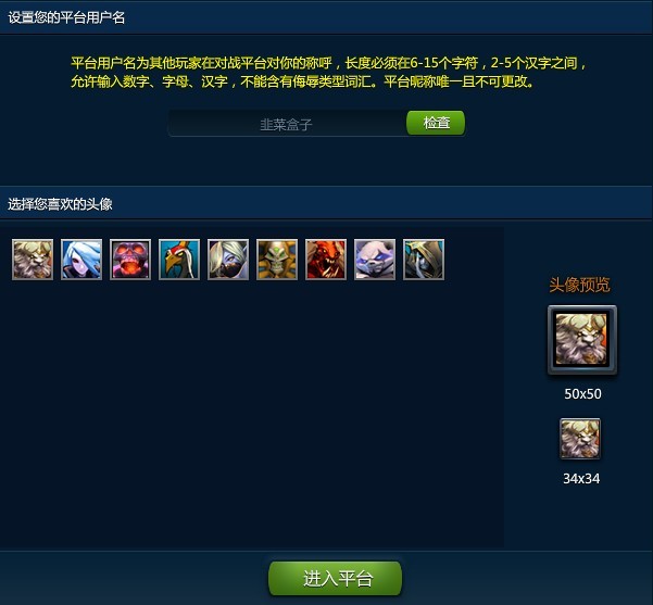 初次进到游戏对战平台时,会提醒您建立您的服务平台登录名,赶快抢鲜申请注册吧。