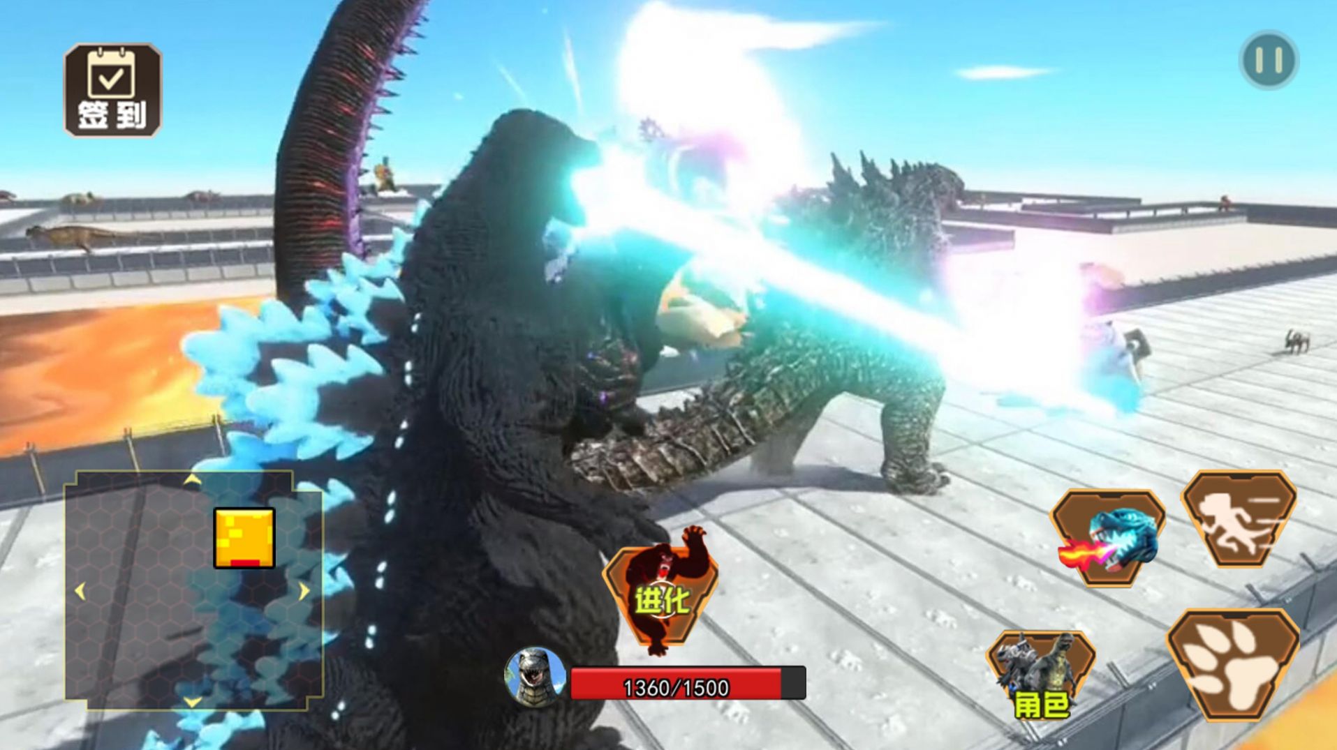 3、你将面对各种怪兽的挑战,尽情体验欢乐怪兽大乱斗,使用各种技能消灭其他怪兽。