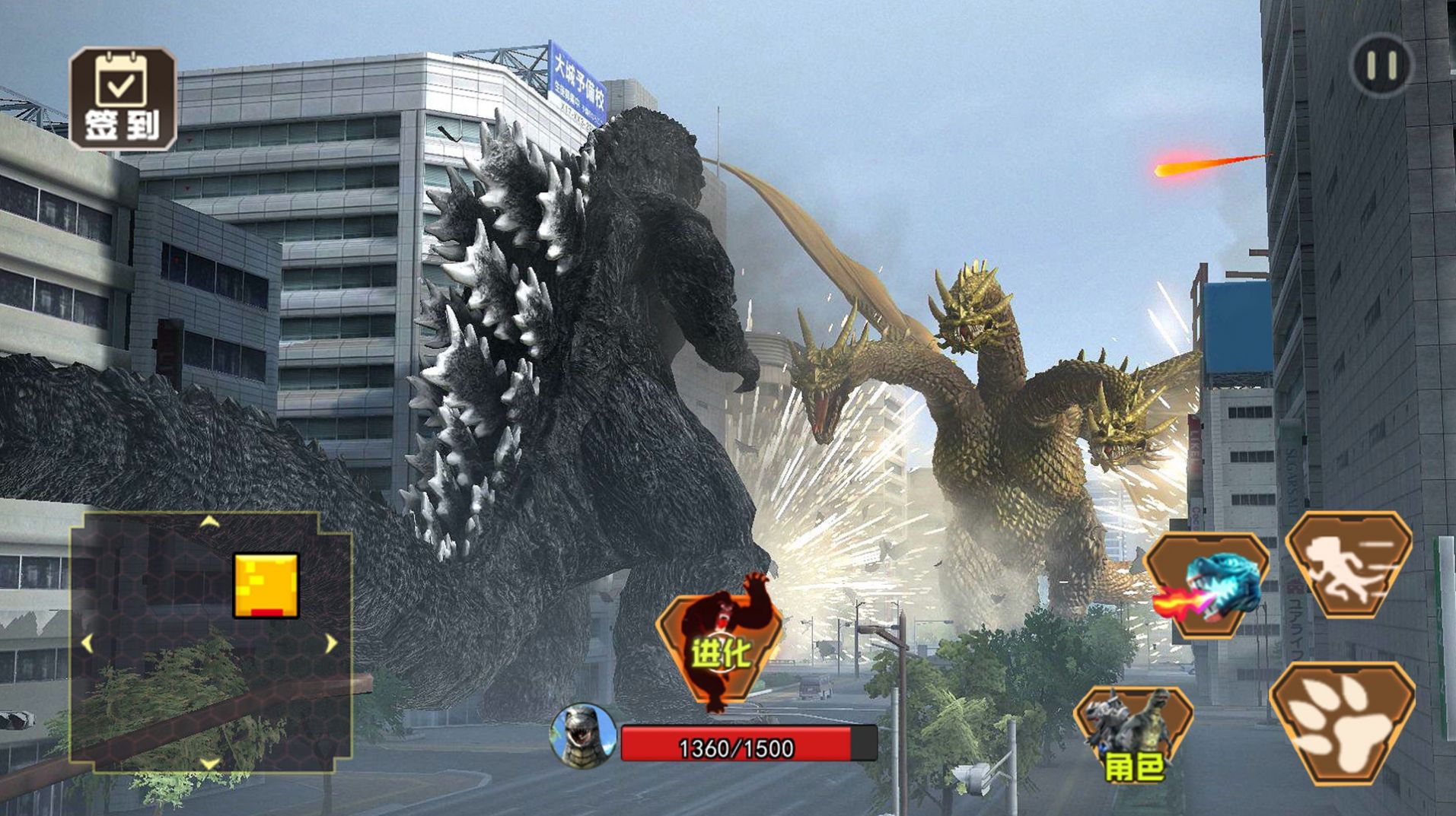 2、城市中疯狂破坏,没有任何事物可以阻挡你的攻势,参与全新的怪兽大战;