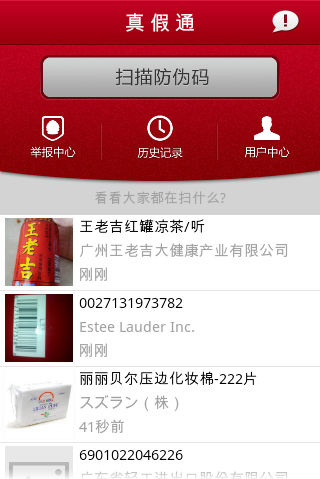 扫描仪产品二维防伪标识,则立即得到产品真伪的結果;