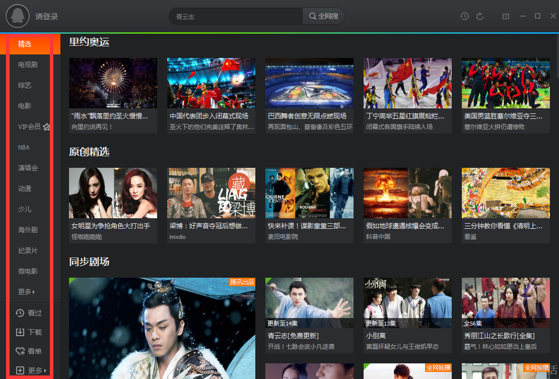 腾迅视频播放软件的视频库网页页面中,给予大量高清的电影、电视连续剧、综艺节目、日本动漫这些视頻。开启腾迅视频播放软件,强烈推荐主页就会有许多 播放综艺节目,并且为了更好地客户更便捷搜索,播放视頻都依照內容的归类分频道列举,下列鲜红色框中的內容都能够即点即看。